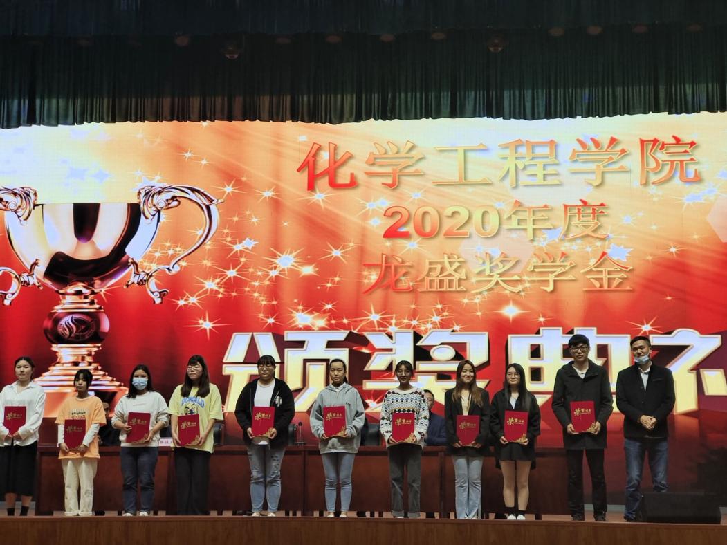 浙江龙盛染料化工有限公司是我国染料规模最大的企业,是中国企业500强、中国石油化工企业100强。浙江龙盛与我校合作历史悠久,目前我校学生在龙盛的就业人数较多,学生素质较高,部分学生已走上企业管理岗位,学校的培养质量深受企业好评。为进一步促进校企合作,浙江龙盛在化学工程学院设立“龙盛奖学金”,鼓励先进,奖优促学。蔡庄红书记宣读了表彰决定,随后浙江龙盛孙珏飞主任为获奖学生颁奖。