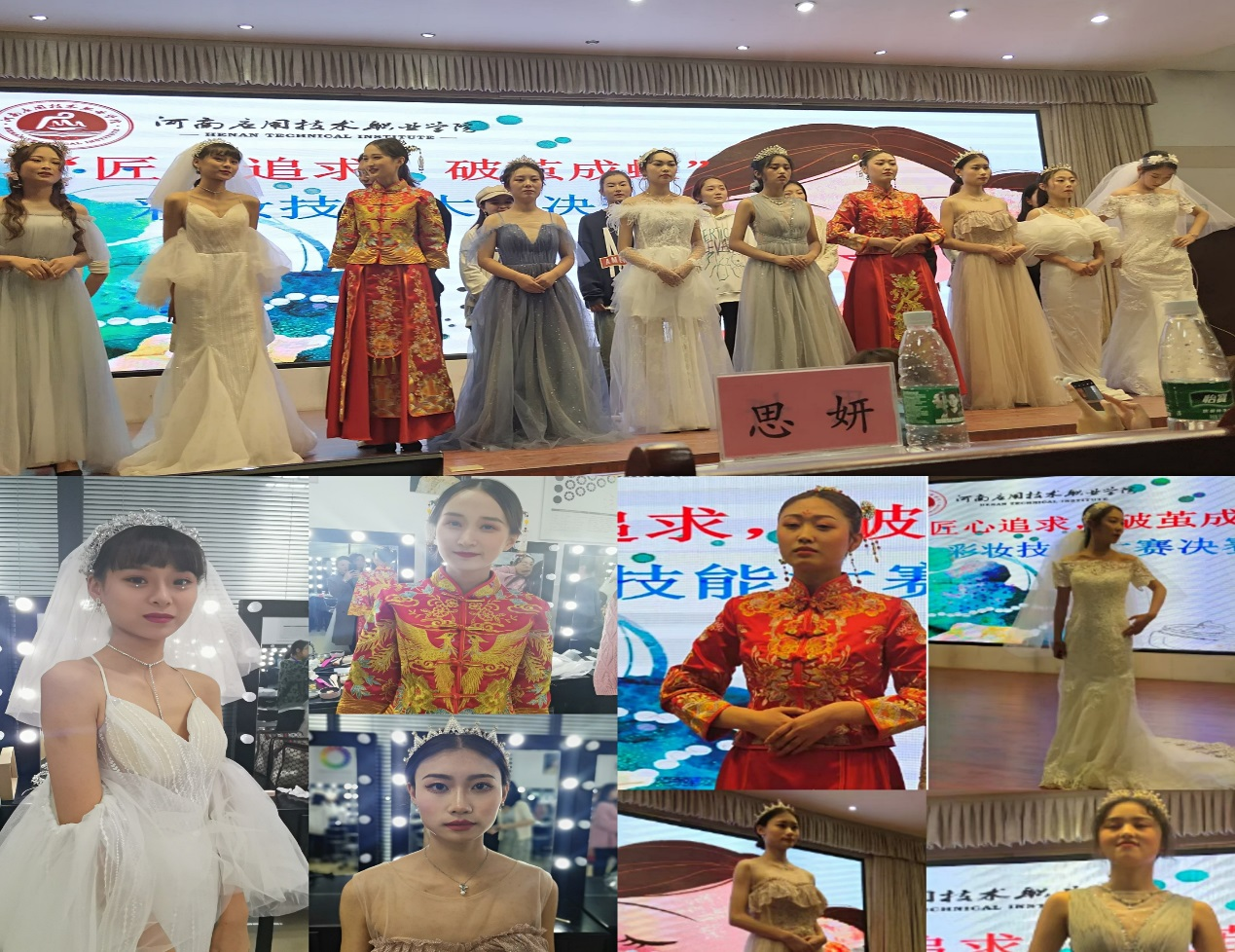 本次比赛由我校化学工程学院承办,邀请上海惠润升生物科技有限公司、合肥思妍商贸有限公司、河南浦康好女人生物科技有限公司、郑州西蒙妮尔化妆品有限公司等六家省内外知名企业同时参与,来自全校各院系的共10支参赛队进入决赛,接受现场校企专家共同考评,比赛以“匠心追求,破茧成蝶”为主题,以“新娘妆妆容造型”为命题,要求选手在规定时间内完成作品并展示。
