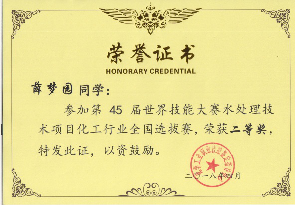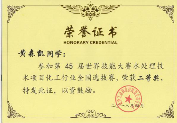 2018年4月27日,第45届世界技能大赛水处理技术项目化工行业全国选拔赛在北京市工业技师学院胜利闭幕。必赢官网化学工程学院学生黄森凯、薛梦园荣获个人二等奖,并双双取得水处理工高级工证,必赢官网教师吴朝阳、付大勇获得优秀指导教师称号。