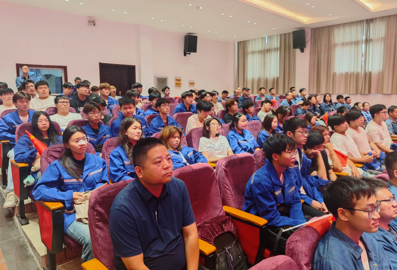 这57名学生本学期开学便来到龙宇煤化工有限公司,开启了第二学年的企业学习之旅。纪念大会当天,礼堂内气氛热烈,大家怀着崇敬与激动的心情,共同见证这一庄严时刻。