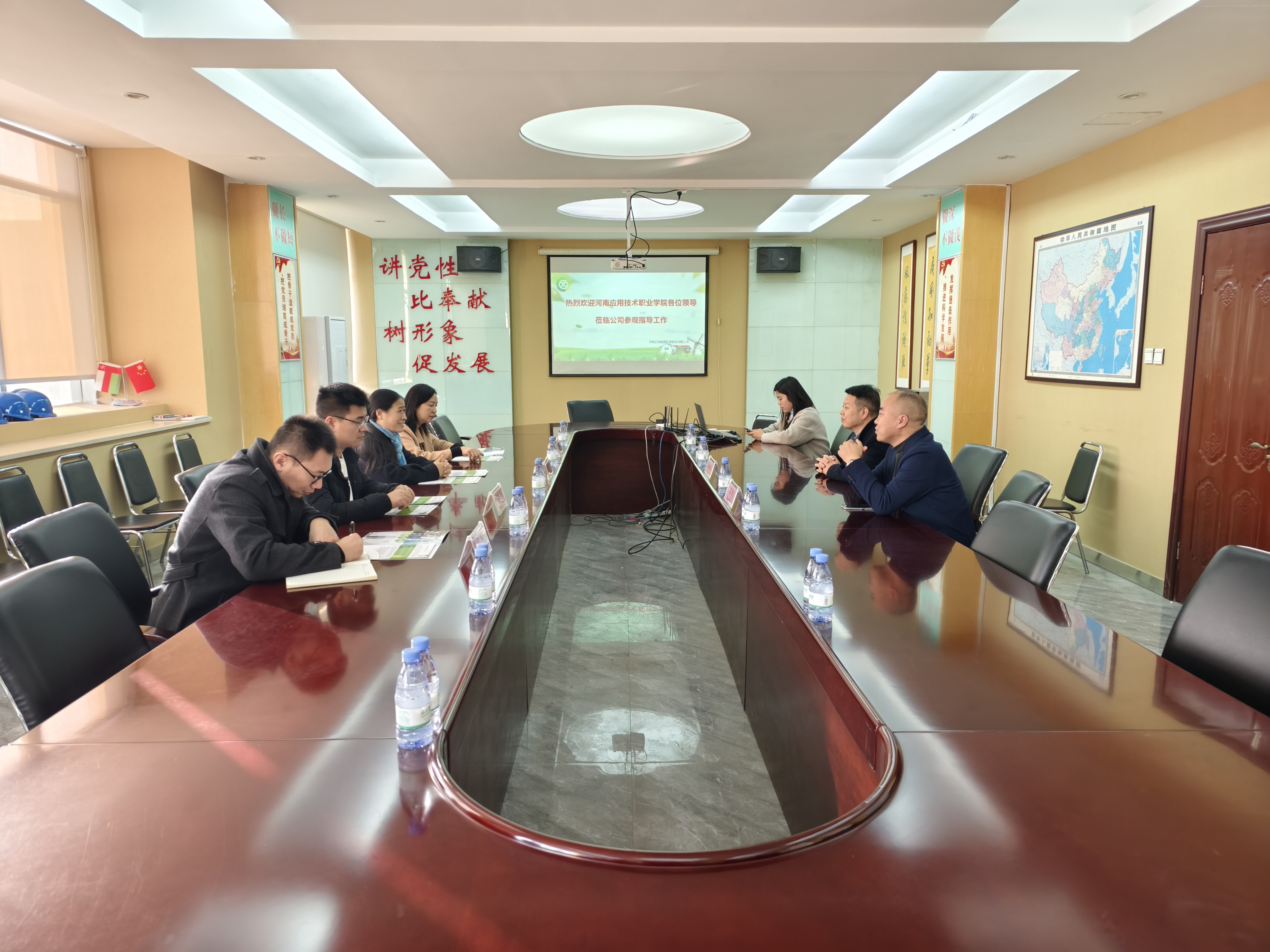 柴凤兰副院长介绍了学院的专业设置、专业特点、人才就业情况并希望企业针对课程建设提供意见和指导。双方在人才培养、课程设置等方面进行深入交谈,随后参观公司检验中心及生产控制中心。