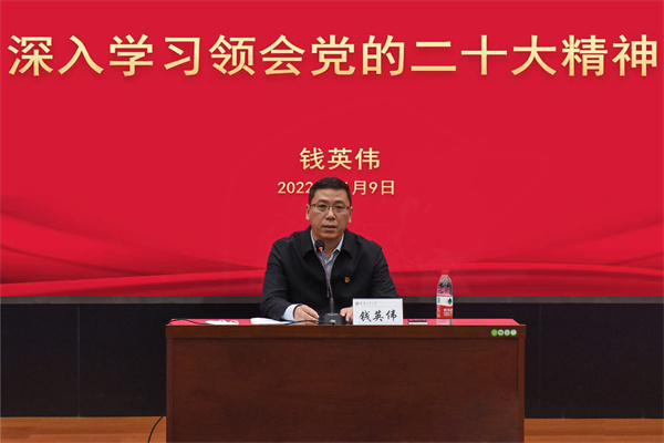 钱英伟强调,要把学习宣传贯彻党的二十大精神,作为学校当前和今后一个时期的首要政治任务,要提高站位、精学细悟,在全校上下迅速兴起学习宣传党的二十大精神热潮,扎实推动习近平新时代中国特色社会主义思想和党的二十大精神在学校落地生根。要坚持学原文、悟原理,把学习贯彻党的二十大精神作为全校党员干部和师生员工的“必修课”“首修课”,确保入脑入心、融会贯通。要把学习成效转化为学校事业高质量发展的强大动力,锚定获批博士学位授权单位的主攻方向,全面提高人才培养质量,奋力谱写特色鲜明的高水平应用型大学建设新篇章。(韩丽佳 文/摄影)