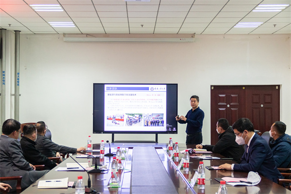 田东泉一行先后参观了汽车与交通工程学院万得车队、化学与环境工程学院检验检测认证中心、学校创新创业展厅及网络安全实验室。刘艳军从科技管理体制机制、科研团队和科技平台建设、科技成果转化、校企深度融合等方面汇报了学校科技工作,详细介绍了学校国家自然科学基金、省级科技专项和重点项目及揭榜挂帅科技攻关项目等重点科技创新工作。