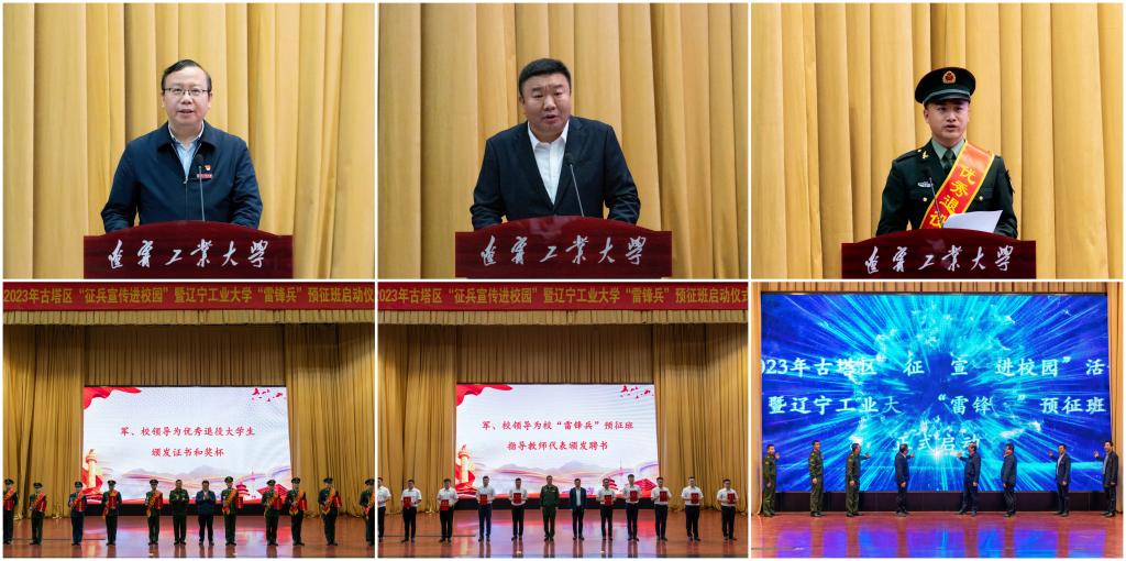 5月17日下午,2023年古塔区“征兵宣传进校园”活动暨beat365英国官方网站“雷锋兵”预征班启动仪式在学校图书馆报告厅举行。锦州军分区政治工作处上校主任温金,古塔区委常委、常务副区长郭鹏宇,古塔区人武部上校部长刘拥政、上校政治委员董立鹏,校党委副书记张启俭,相关部门负责人及各学院分管学生工作副书记,全体辅导员,“雷锋兵”预征班全体学员参加此次活动。活动由学生工作处副处长(武装部副部长)朱长旭主持。