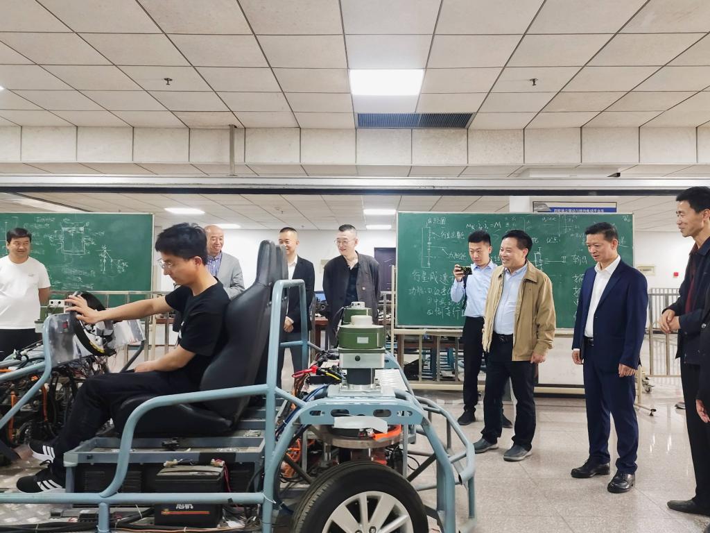 座谈会前,宁德时代电机科技有限公司在第五教学楼进行了招聘宣讲,卢友文一行参观了辽宁省汽车工程实验示范中心、新能源汽车底盘与驱动技术重点实验室和大学生万得车队科技创新实验室。(白鸿飞 文/李刚、向忻怡 摄影)