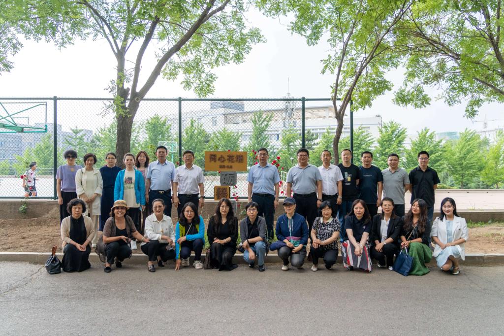 在北区篮球场,与会人员共同栽种下一棵棵藤本月季花苗,细心牵引绑缚枝蔓、浇水定根。百米长的“同心”花墙独立成景,疏密有致,寓意师生同心、建校同心、与党同心、爱国同心。
