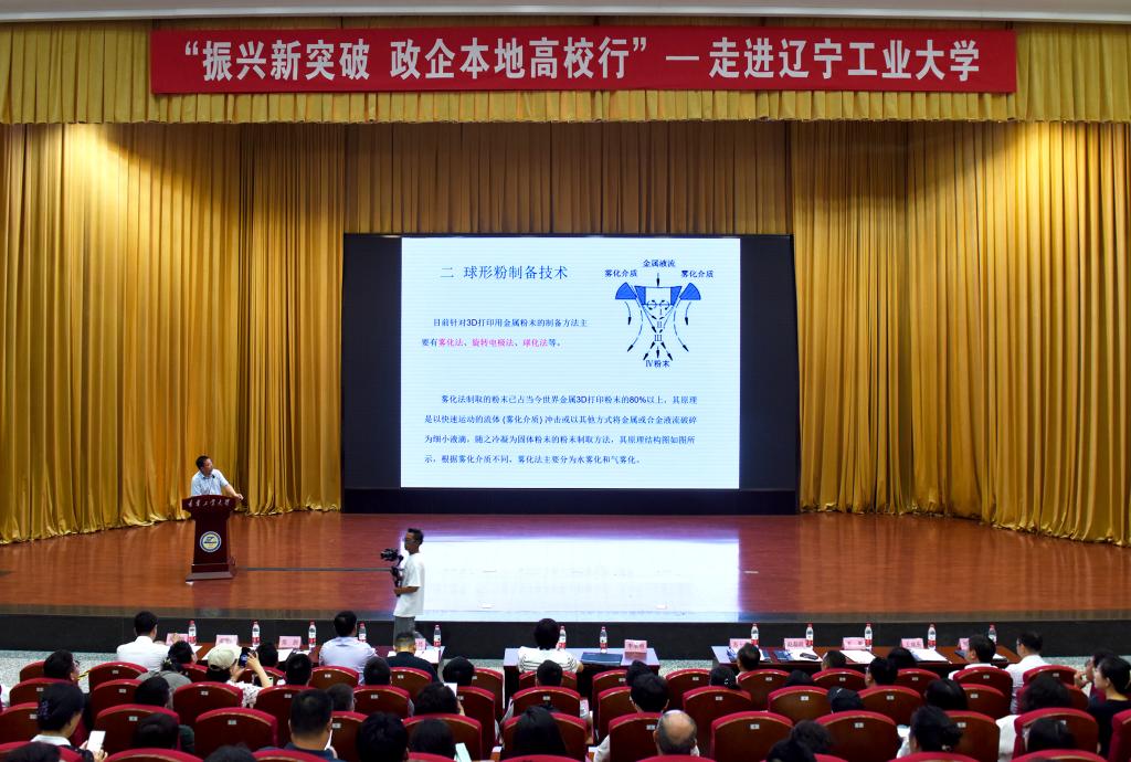 8月1日,beat365官网与锦州市科技局联合开展的“振兴新突破 政企本地高校行”产业对接专场活动在图书馆报告厅举行。beat365官网副校长李永明,锦州市科技局局长王艳芝,副局长才菁、王成东、郑云峰,锦州市金属新材料行业协会常务副会长、秘书长苏士义,beat365官网科学技术处、校友工作办公室(社会合作与服务中心)、国有资产经营公司负责人以及企业代表等100余人参加了活动。会议由科学技术处处长周立岱主持。