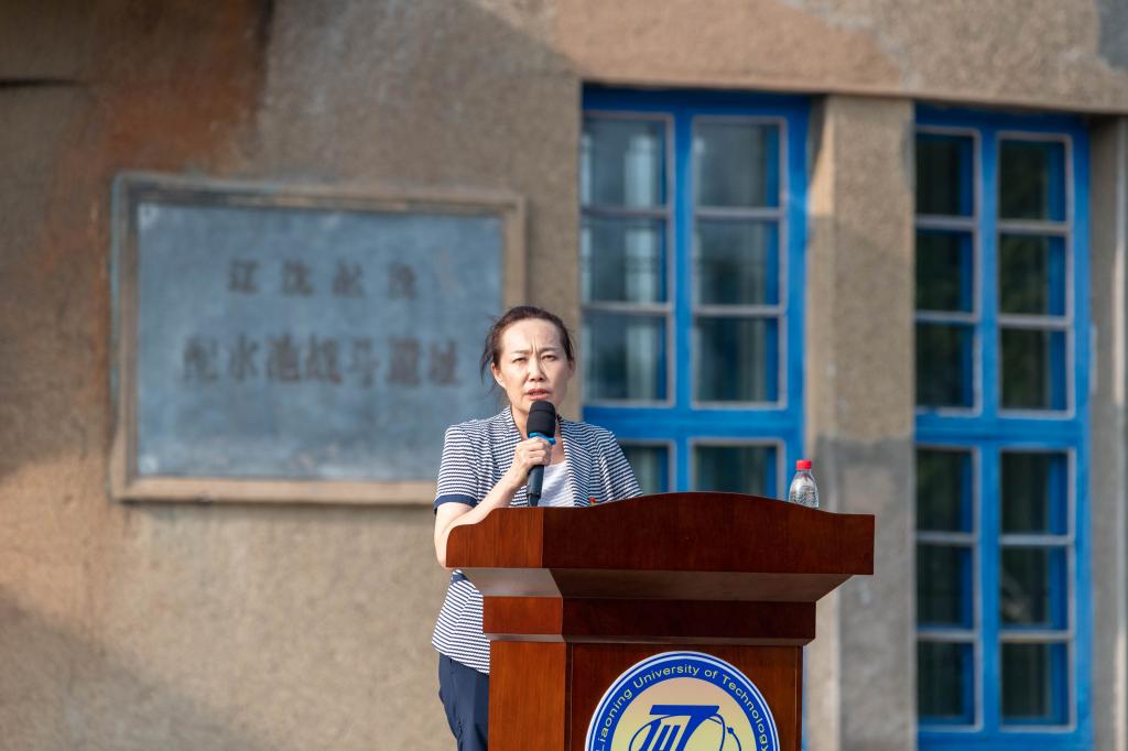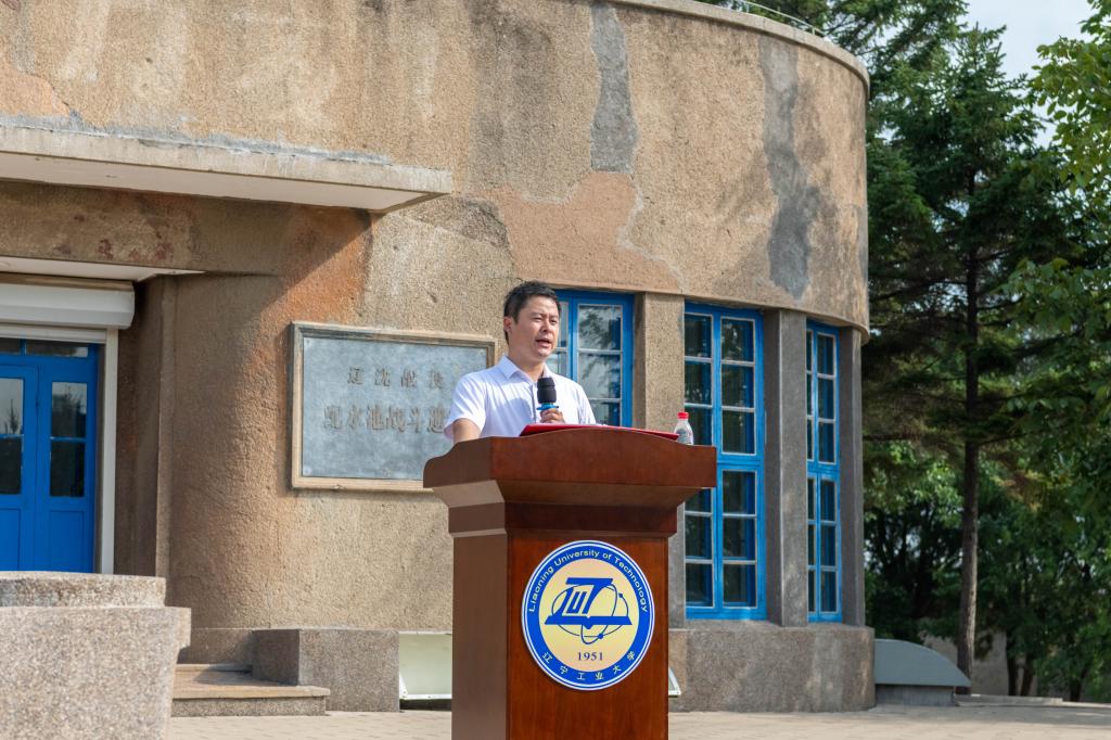 校党委书记钱英伟开启第一讲,他通过“一个苹果”“一场战役”“一份嘱托”三个故事带领同学们走进英雄的城市锦州、走进传承红色基因的beat365英国官方网站。在弹痕累累的配水池战斗遗址东墙前,他详细讲解了配水池战斗的过程,让同学们直观地感受战斗的激烈程度。他指出,配水池战斗留下了坚韧不拔、不畏艰难的革命精神,成为激励一代代辽工大人不断进取、干事创业的精神财富,72年来,学校始终传承配水池战斗的革命精神这一特有的红色根脉,将其与“砺器悟道”的校训精神相结合,取得了丰硕的发展成果,希望同学们要传承红色基因,讲好配水池战斗的故事,讲好辽工大发展的故事,更要坚定信念、立志高远、脚踏实地,争做新时代的追光者,争做民族复兴的生力军。
