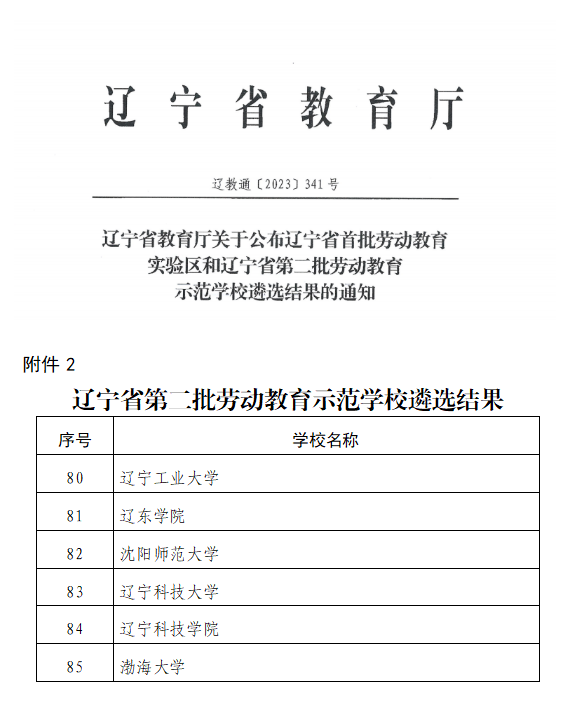 近日,辽宁省教育厅公布了“第二批省级劳动教育示范学校”遴选结果,beat365官网成功获批。