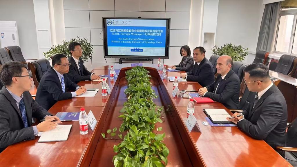10月25日,马耳他国家教育中国国际教育展首席代表Karl Farrugia Wismayer、马耳他大学中国区招生代表丁宁一行来beat365官网交流访问。锦州市留学生联谊会会长于利,锦州侨商会常务副会长张展,学校党委副书记、校长王琦,国际交流合作处负责人等相关人员在第三教学楼六楼会议室与代表团进行座谈交流。