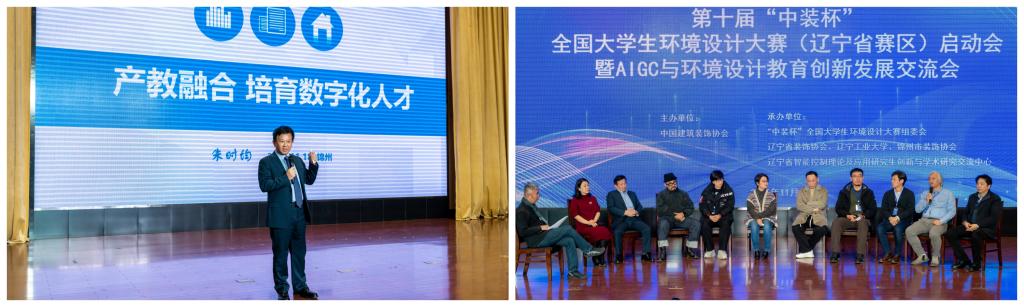11月18日,第十届“中装杯”全国大学生环境设计大赛(辽宁省赛区)启动会暨AIGC与环境设计教育创新发展交流会在图书馆报告厅举行。校党委副书记、校长王琦,党委副书记张启俭,中国建筑装饰协会副会长兼副秘书长艾鹤鸣,中国建筑装饰协会学术与教育专业委员会秘书长、“中装杯”全国大学生环境设计大赛组委会主任朱时均,辽宁省装饰协会会长刘兴贵,教育部设计学教指委专家、浙江大学孙守迁教授,大连理工大学唐建教授以及来自省内20余所设计类相关高校的500余名师生参加大会。启动大会由文化传媒与艺术设计学院院长杨天明主持。