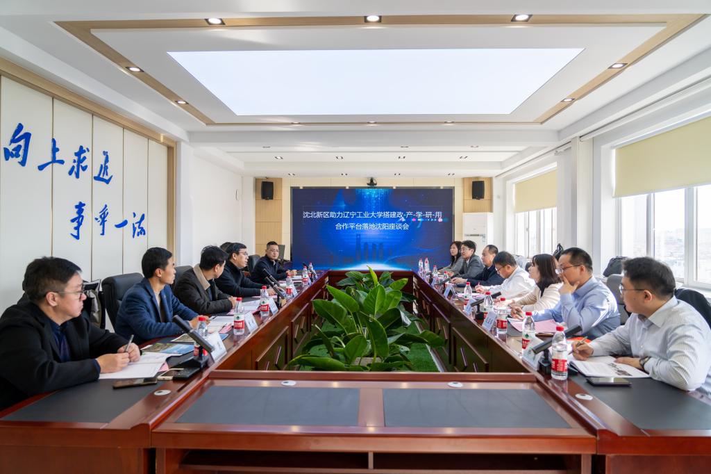 12月6日,沈北新区助力beat365英国官方网站搭建政-产-学-研-用合作平台落地沈阳座谈会在学校第三教学楼八楼会议室举行,沈北新区辉山开发区管委会副主任王晓宇、相关部门负责人及辽宁智慧运载中试基地、高校成果转化企业代表参加座谈会。校党委书记钱英伟、副校长刘艳军及相关部门、学院负责人参加座谈会。