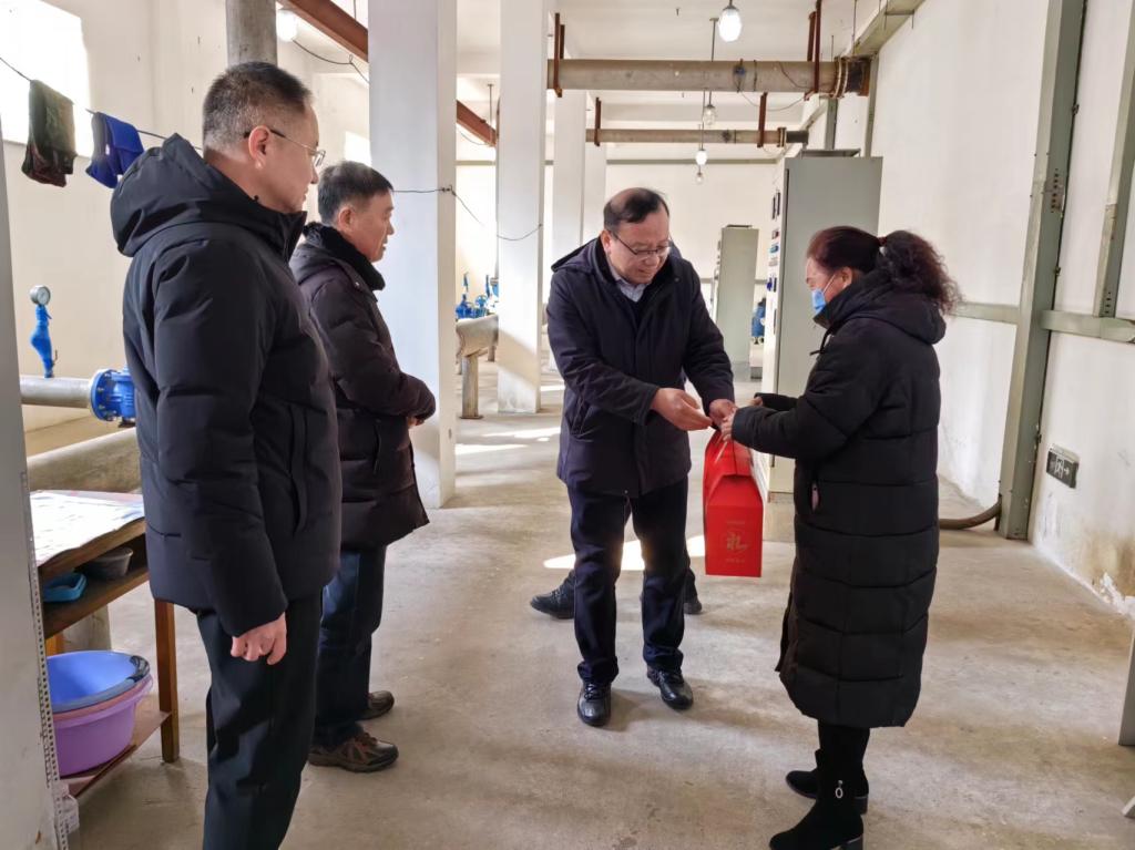 校领导先后走访了国际教育学院、变电所、西门门卫、南区供暖中心、水泵房,亲切看望了值班的教职工,热情地与他们握手交流,感谢他们为学校发展和服务育人作出的特别贡献,并送上新春礼包。