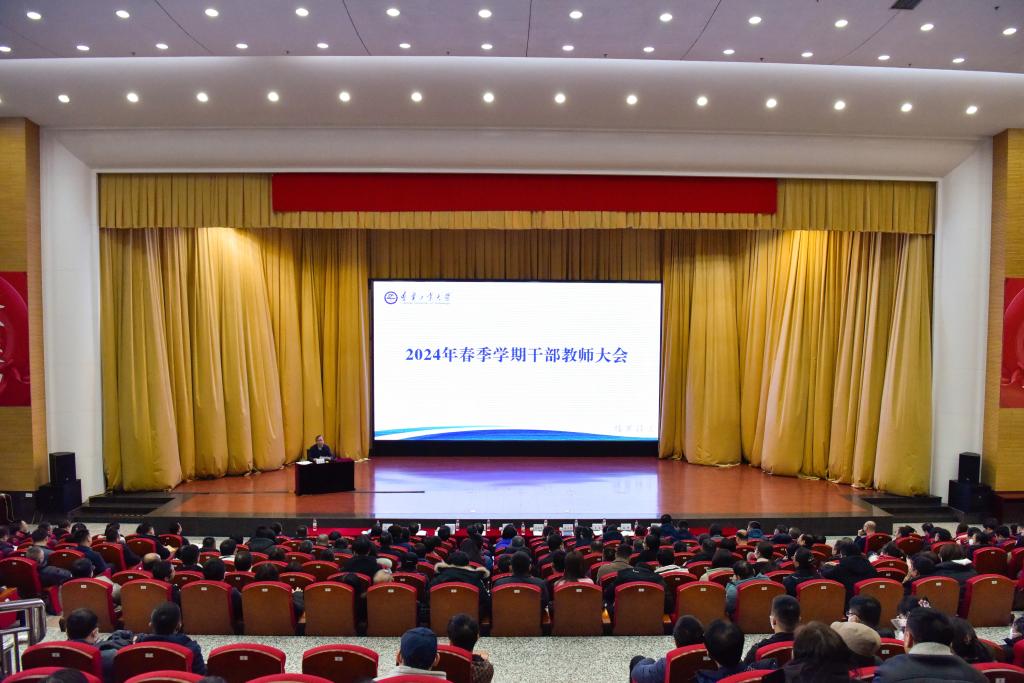2月28日,学校在图书馆报告厅召开2024年春季学期干部教师大会。学校党委领导班子成员、全体中层干部、教授、博士、教研室主任、实验中心主任、分团委书记、专职组织员参加会议。会议由校党委副书记张启俭主持。