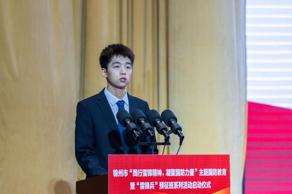 王琦在启动仪式上讲话。他指出,辽工大作为建立在配水池战斗遗址上的大学,学校始终传承“敢于向前、攻坚克难”的配水池战斗革命精神,高度重视大学生国防教育和征兵工作,全方位建设“雷锋兵”预征班育人平台,预征班学员顺利实现参军入伍和按时毕业两不误。他强调,无论时代如何变迁,雷锋精神永不过时。高校要落实立德树人根本任务,让学雷锋在青年大学生中蔚然成风,让“雷锋式”大学生在“英雄城市”锦州这片红色热土上成长成才。他希望青年大学生争做新时代“雷锋式”大学生,为实现辽宁全面振兴新突破贡献青春力量。