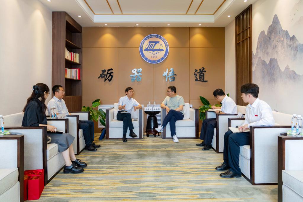 高宇博详细介绍了企业现状、业务领域以及与高校合作的模式与案例,他希望通过此次到访,与学校充分合作,以知识产权服务为抓手,充分利用已有成果,突破“卡脖子”技术壁垒,将科技成果转化为社会价值,打通知识产权创造、运用、保护、管理、服务全链条,助力beat365英国官方网站进一步构建工科高校科技成果转化与服务体系,赋能新质生产力发展。(赵炜浓 文/李刚 摄影)