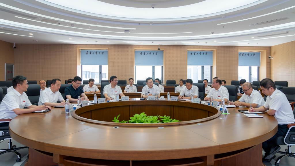 王庆东一行实地考察了化学与环境工程学院虚拟仿真实训中心、智慧校园建设中心和学校虚拟仿真实训中心,听取了学校“十四五”以来内涵发展情况的汇报,并对近年来学校的办学成绩、校园建设及发展规划给予充分肯定。