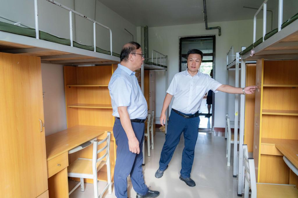 校领导先后来到迎新现场、宿舍楼、实验室、校园新建景观等核心点位,重点检查了学校开学准备情况,对学生公寓卫生间改造等工程进行了实地检查。
