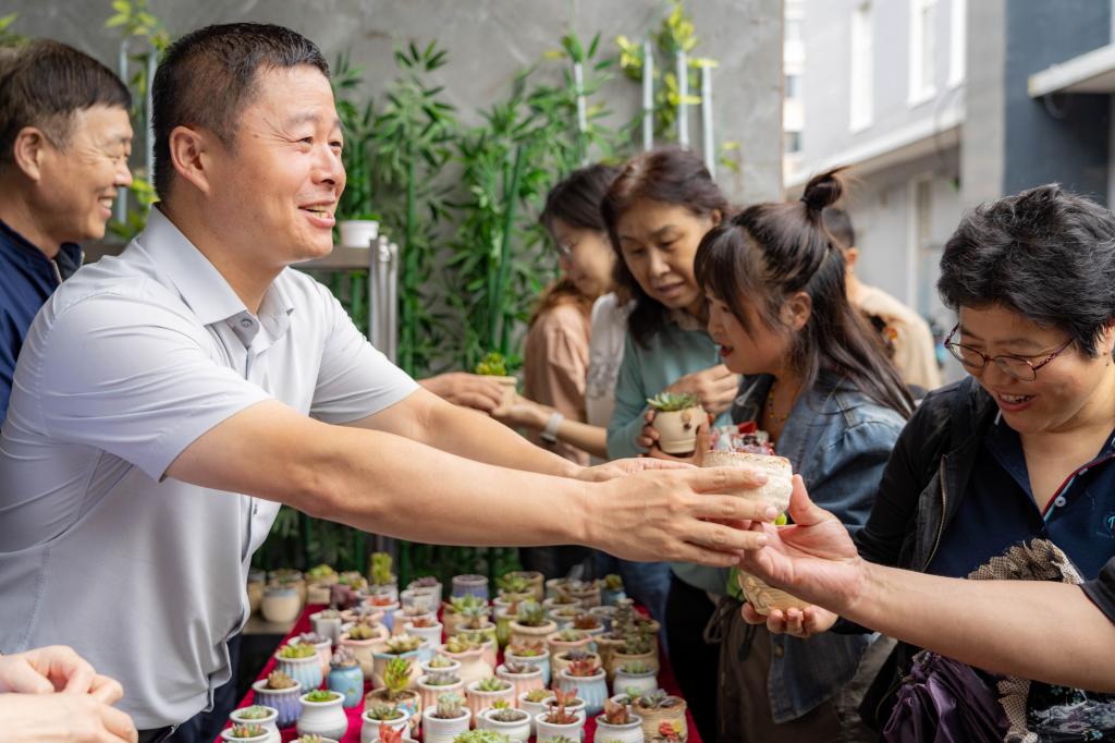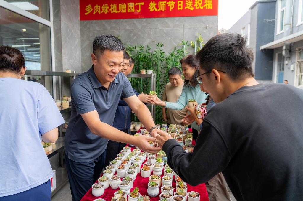 9月10日中午,学校在教工食堂准备了寓意耕耘与成长的多肉绿植,送给前来就餐的老师。校领导们将绿植送到每一位老师的手中,并送上亲切的节日问候,希望老师们在忙碌的教育教学工作中,努力践行和弘扬教育家精神,以饱满的热情投入工作,以“甘为绿叶”的精神无私从教。