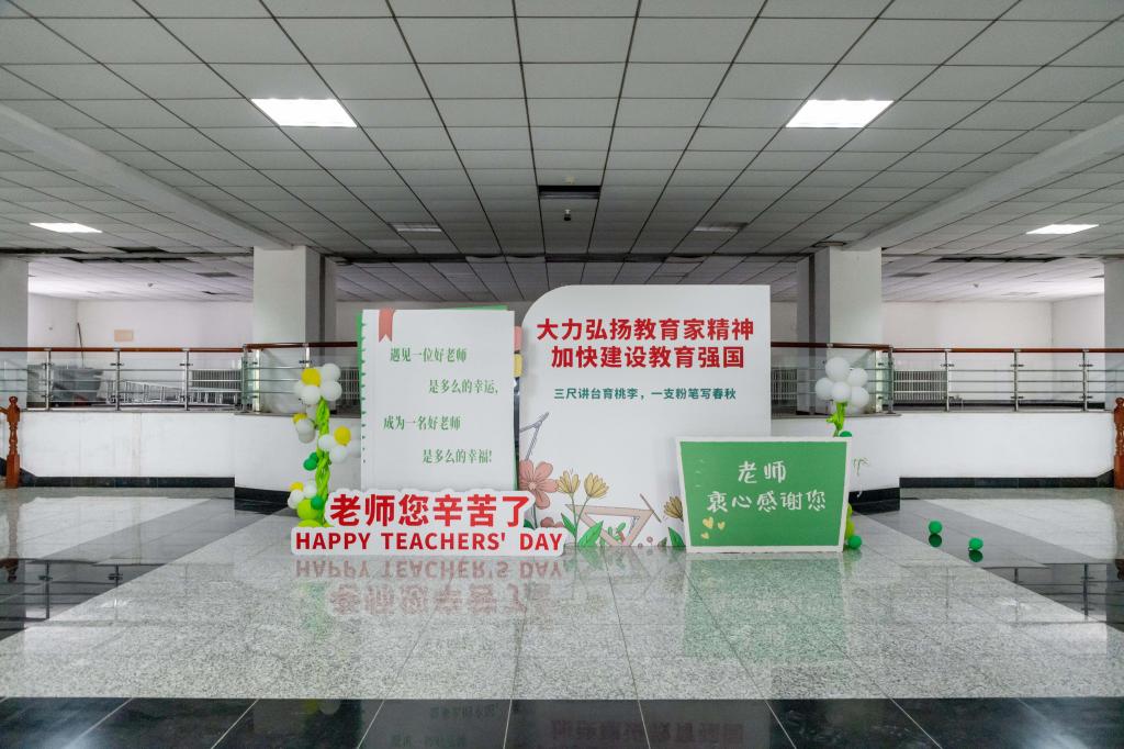 为大力弘扬教育家精神,激励全校广大教职员工落实立德树人根本任务,在第40个教师节来临之际,学校在校园内悬挂宣传条幅,设立教师节打卡点,召开优秀教师表彰大会,为教师赠送绿植,打造有温度有深度的节庆活动,营造了尊师重教的浓厚氛围,团结凝聚全体教职员工以更加奋发有为的精神状态投身教育强国建设实践。