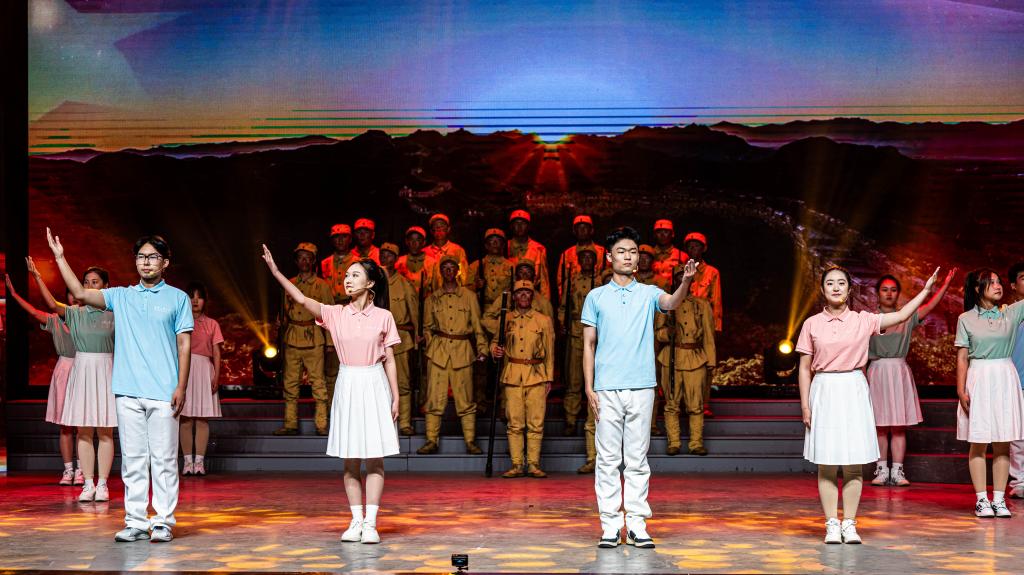 扮演范永的机械工程与自动化学院2021级本科生付佳辉说:“能够饰演范永这一角色我深感无比荣幸,仿佛穿越时空,化身剧中那位满腔热血的战士,与同志们并肩作战,共同书写那段激情燃烧的岁月。每一次台词的吐露,都凝聚着我对祖国的深情厚谊和对民族的无限热爱。这不仅是一次角色的演绎,更是一次心灵的碰撞,激励我们青年学子爱国奋进,自强不息”。