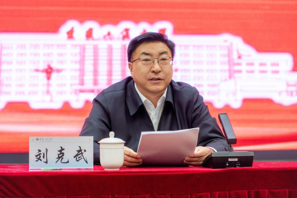 刘克武指出,党的十八大以来,以习近平同志为核心的党中央团结带领全党全国各族人民,顶住外部压力、克服内部困难,办成一件件大事要事,战胜一个个风险挑战,党和国家事业取得历史性成就、发生历史性变革,全面建成了小康社会,如期实现了第一个百年奋斗目标,我国迈上了全面建设社会主义现代化国家新征程。实践充分证明,“两个确立”是党和人民应对一切不确定性的最大确定性、最大底气、最大保证。广大师生要深刻领悟“两个确立”的决定性意义,坚持不懈用习近平新时代中国特色社会主义思想凝心铸魂,以实现中华民族伟大复兴为己任,为强国建设、民族复兴伟业贡献智慧和力量。