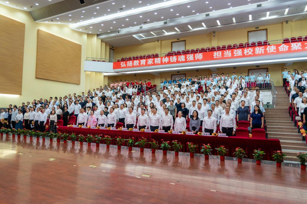 9月10日,学校在图书馆报告厅举行庆祝第41个教师节表彰大会,大会主题为“弘扬教育家精神铸魂强师 担当强校新使命聚力笃行”。锦州市委常委、组织部部长陈凯,校党委书记钱英伟,党委副书记、校长张启俭,原党委副书记、校长佟绍成以及其他学校领导班子成员、职能部门负责人、教学单位班子成员、高层次人才代表、获奖教师代表、荣休教师代表、新入职教师及学生代表出席大会。大会由校党委副书记刘艳军主持。