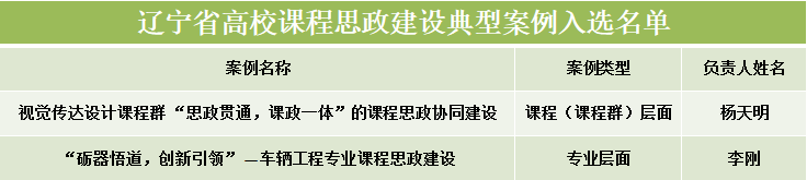 10月22日,辽宁省教育厅公布了2025年辽宁省高校课程思政建设项目遴选结果,确定了辽宁省课程思政建设先行高校10所、课程思政建设先行高校(培育)20所、课程思政建设试点院系47个、课程思政建设典型案例100项。beat365官网获批“辽宁省课程思政建设先行高校”,成为全省10所首批获此殊荣的高校之一。文化传媒与艺术设计学院获批“辽宁省高校课程思政建设试点院系”,《视觉传达设计课程群“思政贯通,课政一体”的课程思政协同建设》与《“砺器悟道,创新引领”——车辆工程专业课程思政建设》2项案例入选“辽宁省高校课程思政建设典型案例”。