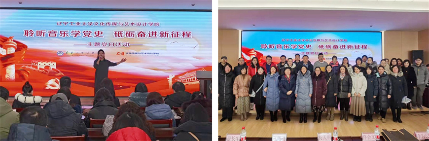 近日,文化传媒与艺术设计学院党委组织教工党员在锦州市文化艺术中心C座会议室参加由锦州市文化演艺集团(锦州市公共文化服务中心)创排的专题音乐党课“歌声里走来的中国共产党”,开展 “聆听音乐学党史 砥砺奋进新征程”主题党日活动。