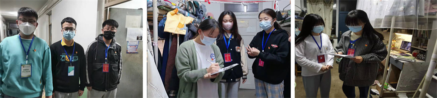 成立查寝小组和监督小组。查寝小组定时查寝,确保学生在校情况,并督促学生做好寝室卫生,勤洗手、勤消毒、勤通风,将每日生活垃圾带到楼下指定地点,保证寝室卫生良好。监督小组监督学生佩戴口罩情况。疫情当前,佩戴口罩是阻断病毒的有效方式。