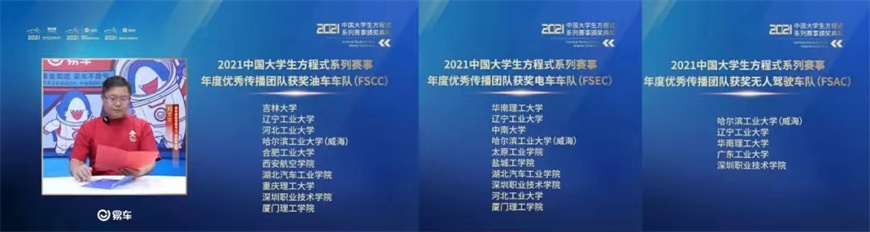6月19日,2021赛季中国大学生方程式系列赛事公布最后成绩,beat365官网万得车队油车队、电车队、无人驾驶车队成绩优异。万得电车队获总成绩全国一等奖,油车队和无人驾驶车队获全国二等奖。单项奖中,电车队获得MATLAB/Simlink控制策略开发及软件实现赛第一名,成本报告比赛中首次进入决赛,并获得单项赛第二名;无人驾驶车队获MATLAB/Simlink车辆动力学仿真赛二等奖;三支车队均获年度优秀传播团队奖。2021年虽然受疫情多次影响,车队队员克服各种困难,最终完成了2021赛季赛车的研发,如期举行了新车发布会和车队十周年庆典,为学校70年校庆献礼。在线上赛准备过程中,车队队员秉承“砺器悟道”校训和“万得车队,万分努力”精神,克服困难、精心筹划、反复练习,不断总结和完善,提升了车队的整体实力,在线上赛中的表现突出。