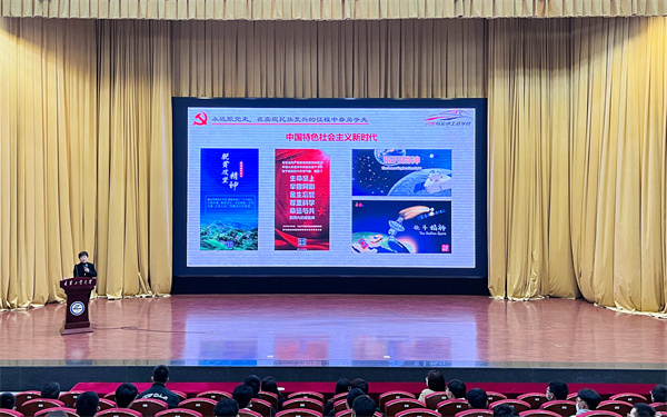 刘峰以“永远跟党走,在实现民族复兴的征程中奋勇争先”为主题,以中国共产党人的精神谱系为脉络,带领2022级新生重温我党走过的辉煌历程。她表示,青年大学生要在实现民族复兴的征程中奋勇当先,一是要有坚定的理想信念,做有信仰的人。二是要勤学,下得苦功夫,求得真学问,做有本领的人。三是要修德,加强道德修养,注重道德实践,做有品德的人。四是要明辨,善于明辨是非,善于决断选择,做有正确判断力的人。五是要笃实,扎扎实实干事,踏踏实实做人,做有担当的人。她号召同学们要自觉把个人理想融入实现中华民族伟大复兴中国梦的壮阔征程,不断把伟大梦想变为伟大复兴的辉煌现实。