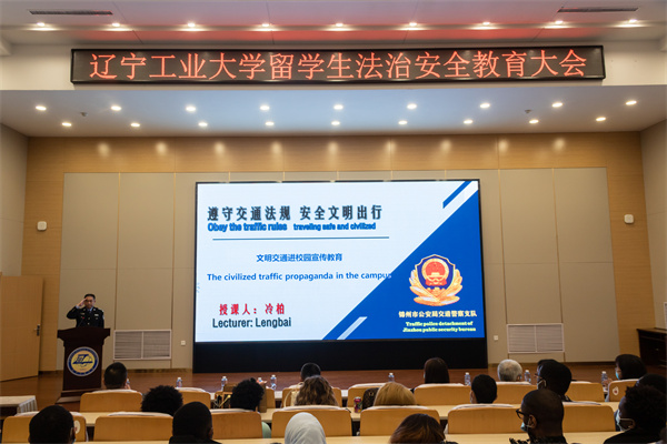 为加强beat365官网留学生安全教育,增强留学生安全意识,3月9日下午,国际教育学院在第五教学楼党员教育培训中心召开了留学生法治安全教育讲座。本次讲座邀请了锦州市公安局出入境管理局外管科科长郭宁、副科长李想、警官李丽,凌河交警大队源头管理中队中队长冷柏、敬业派出所副所长张恒旭等警官,为beat365官网留学生普及中国相关法律法规。beat365官网保卫处处长尚大有、国际教育学院副院长闫鹏以及相关老师参加了本次讲座,讲座由国际教育学院副院长范旭主持。