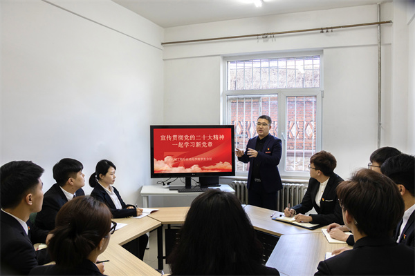 学院通过分区推进,实现了从整体到局部、再从局部到整体的上下联动优势,以多形式、多层次、全覆盖的全员学习教育培训宣传活动,在全院掀起了学习宣传贯彻党的二十大精神的热潮。(张磊 文/李刚 摄影)