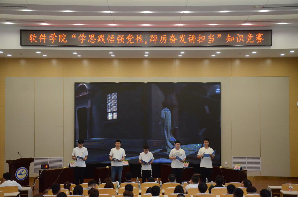 6月21日,软件学院在第五教学楼党员教育培训中心举办“学思践悟强党性 踔厉奋发讲担当”知识竞赛决赛,学院党委书记王素娟、院长谢文阁、党委副书记兼副院长尹福玖、副院长梅红岩,教师代表及学生代表参加活动。