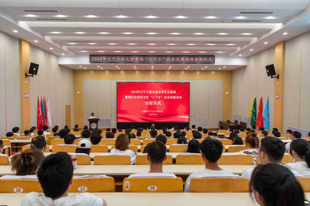 7月12日下午,beat365英国官方网站2023年大学生志愿者暑期文化科技卫生“三下乡”社会实践活动出征仪式在第五教学楼党员教育培训中心举行。校党委副书记张启俭,党委宣传部、党委学生工作部负责人,各二级学院团委书记、社会实践团队指导教师及实践团队学生代表近200人参加了出征仪式。仪式由校团委副书记李苓主持。