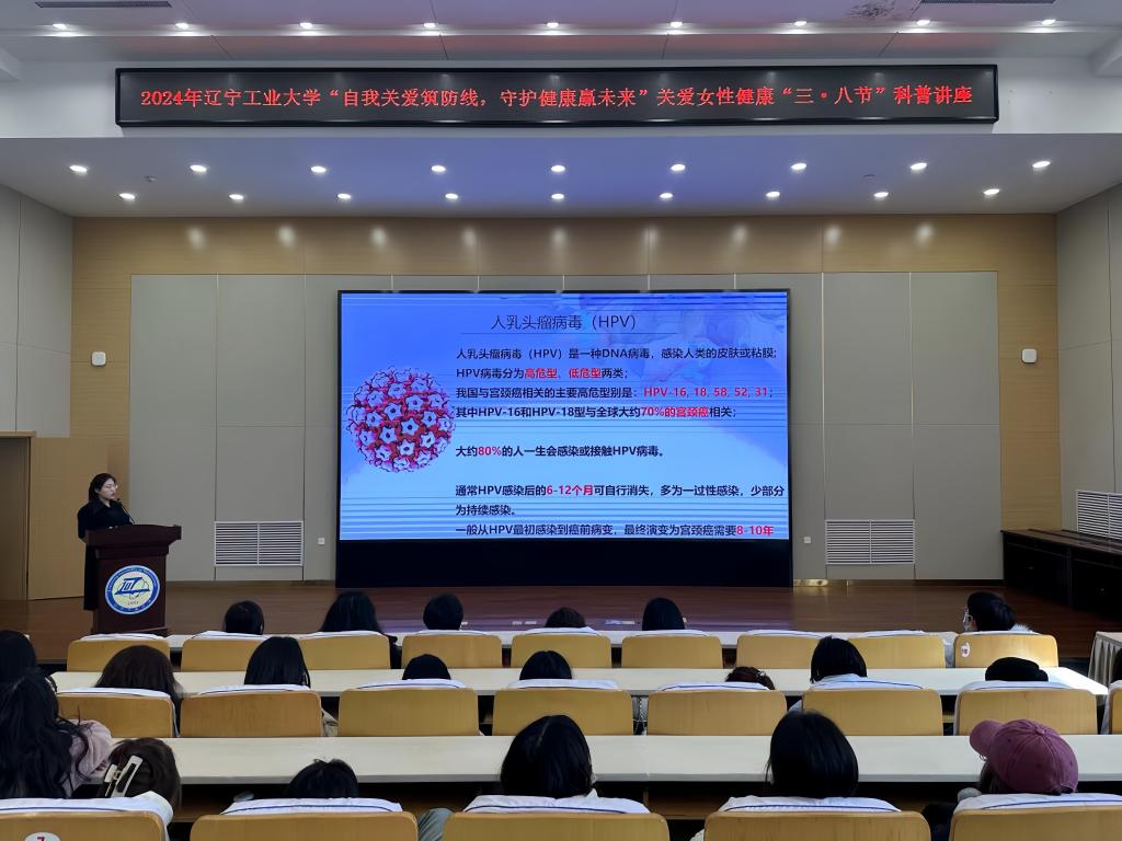 近日,beat365官网举办“自我关爱筑防线 守护健康赢未来”关爱女性健康科普知识讲座。讲座由校工会、校医院和校团委联合举办,共青团汽车与交通工程学院委员会承办,邀请了锦州市妇婴医院产科主治医师阚辰晓主讲。相关部门负责人及学校女教职工、学生等200余人聆听了讲座。