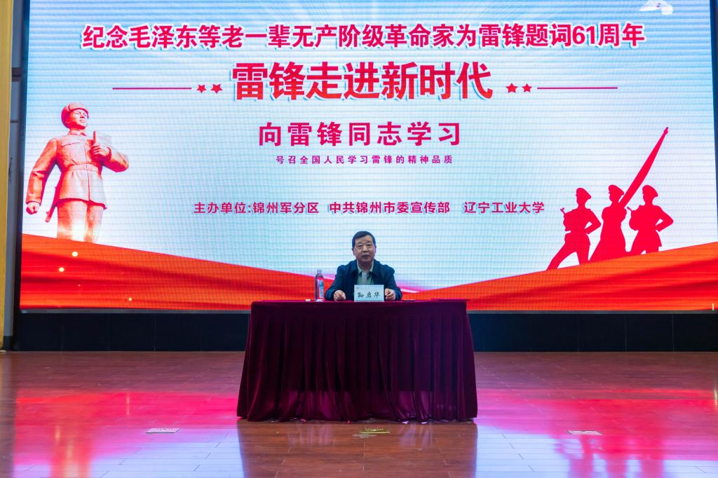 4月18日,雷锋团第十三任团长、辽宁省雷锋研究会荣誉会长孙启华在学校图书馆报告厅为九校联盟“雷锋兵”预征班学员授课。副校长李永明,锦州军分区动员处、古塔区人武部、驻锦各高校及学校相关部门负责人,各高校“雷锋兵”预征班学员代表参加活动。