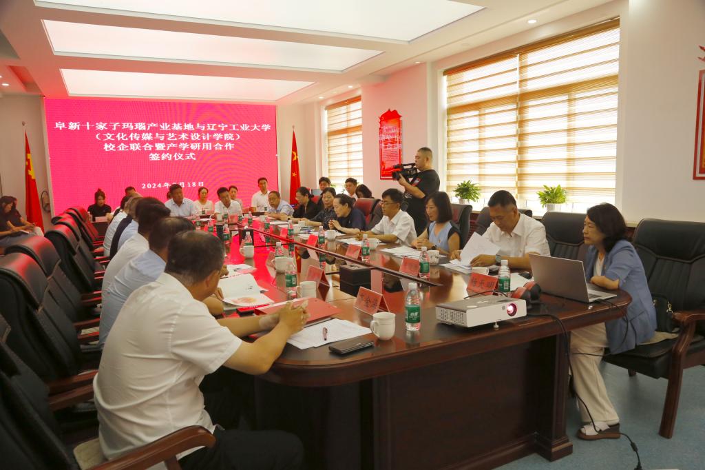 7月18日,校纪委书记王宏,文化传媒与艺术设计学院领导班子及教师代表一行赴阜新十家子玛瑙产业基地开展访企拓岗专项活动。阜新蒙古族自治县县长包峰、县政协主席陈忠民、十家子镇政府相关领导参加了签约仪式,仪式在十家子镇人民政府举行。