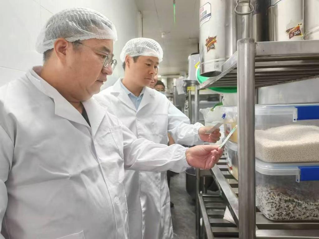 刘艳军一行深入食堂了解各档口售卖和学生就餐情况,仔细查看了明厨亮灶、食品留样、后厨操作间、冻品冷库、消防管理等情况,对从业人员健康管理、食品安全双总监落实、食品安全自查、进货原材料采购台账等资料进行了查验,并提出指导意见。