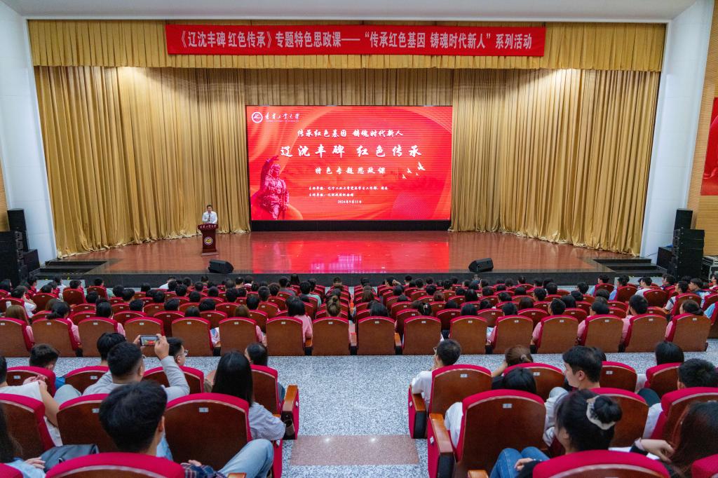 辽沈战役纪念馆红色宣讲团通过情景剧《辽沈战役的历史瞬间》《英雄本色卜凤刚》《巾帼展壮志 军号扬豪情》,访谈党课《致敬·梁士英》《人民的苹果》,歌曲《丰碑》等节目,将那段刻骨铭心的峥嵘岁月情景再现,声情并茂地演绎了中国共产党领导东北军民取得解放战争转折之战——辽沈战役伟大胜利那段波澜壮阔的历程,呈现了红色故事中蕴含的精神力量,深刻诠释了“红色江山来之不易,守好江山责任重大”,为全体师生上了一堂精彩的专题特色思政课。