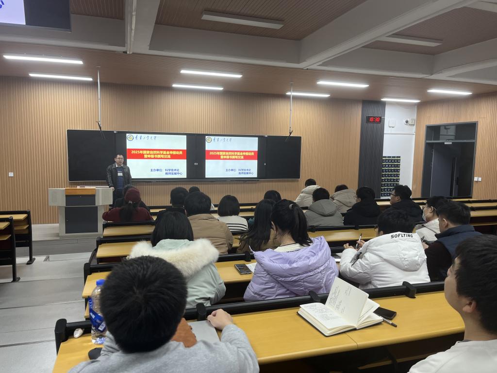 11月29日,由科学技术处和教师发展中心联合举办的2025年国家自然科学基金申报动员暨申报书撰写交流活动在第一教学楼A座121教室举行。活动邀请科学技术处协同创新中心主任陈鑫主讲,70余名青年教师参加了本次活动。