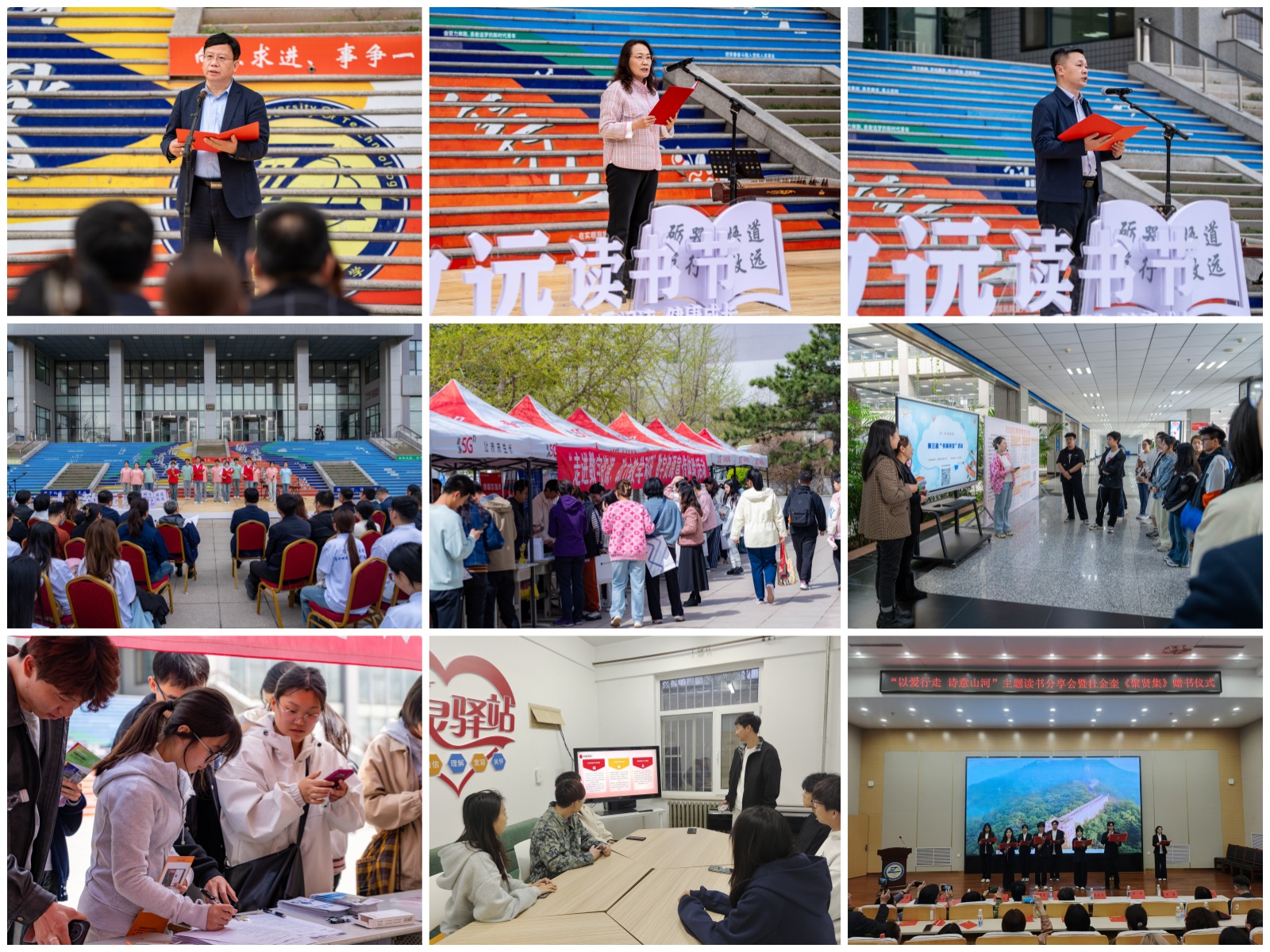 4月23日,学校在图书馆广场举行“工大·致远”2025年读书节启动仪式。校党委副书记、校长张启俭,党委常委、纪委书记王宏,党委常委、副校长李永明,锦州市文联原主席、市作协主席白雪生,《锦州新闻》节目主持人、2005级校友曹长亮,辽沈战役纪念馆配水池战斗遗址保护中心主任姚璐璐,学校相关部门负责人和师生代表300余人参加活动。