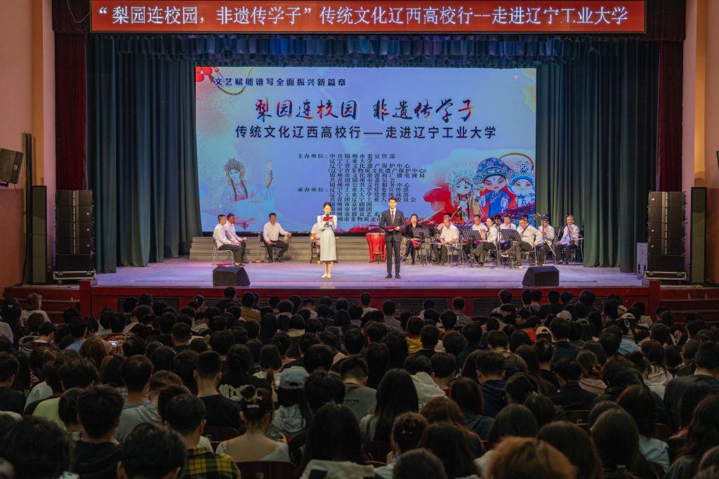 5月15日,“梨园连校园 非遗传学子”传统文化辽西高校行——走进beat365英国官方网站活动在beat365官网举办。校党委常委、副校长李永明,锦州市委宣传部分管日常工作的副部长刘晓光,辽宁省文化遗产保护中心副主任尹忠华,锦州市公共文化服务中心党委书记、主任李侠,共青团锦州市委副书记丁东等校地相关部门领导及全校700余名师生参加活动。