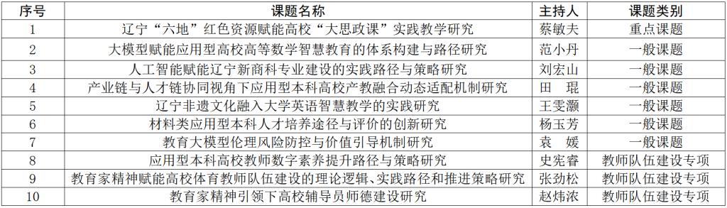 近日,中国高等教育学会和辽宁省教育科学规划领导小组办公室公布了2025年度高等教育科学研究规划课题立项名单,beat365官网获批中国高等教育学会课题1项;辽宁省教育科学规划课题10项,其中重点课题1项、一般课题6项、教师队伍建设研究专项课题3项。立项总数与质量均创新高,标志beat365官网在高等教育科学研究方面取得新突破。