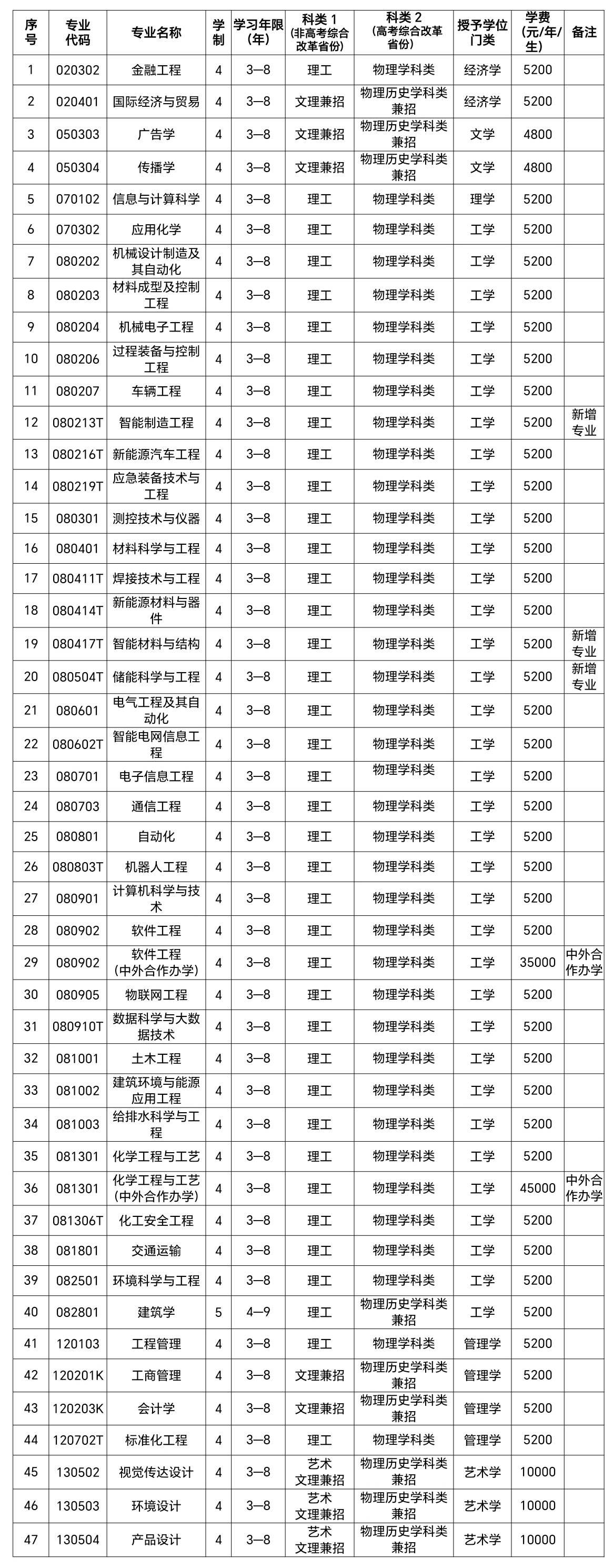 国际经济与贸易、软件工程(中外合作办学项目)、化学工程与工艺(中外合作办学项目)根据行业及专业教学要求,入校后外语课程只安排英语教学,非英语语种考生不宜就读。其他专业语种不限。