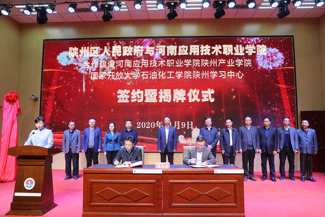 2020年11月9日上午,我校与陕州区人民政府合作建设陕州产业学院、国家开放大学石油化工学院陕州学习中心正式签约揭牌。必赢官网党委书记秦书君,院长范晓伟,副院长陈君丽,陕州区委副书记、区长胡志权,陕州区人大常委会主任吴自力,陕州区政协主席潘新乐,陕州区副区长孙丽松等领导出席签约暨揭牌仪式。化工学院蔡庄红书记以及朱冰院长出席了此次签约暨揭牌仪式。陕州区副区长孙丽松主持仪式。