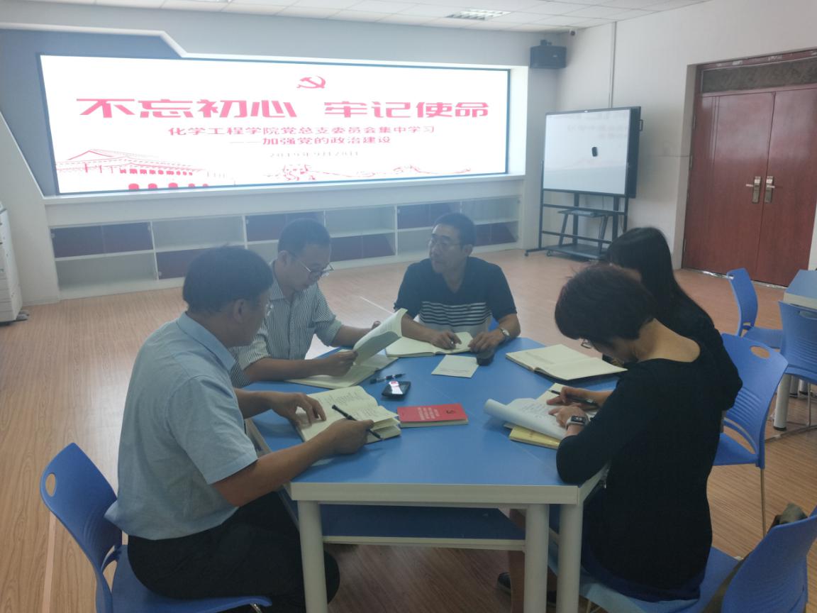 9月28日,化学工程学院党总支委员会在E楼实训楼创意馆召开“不忘初心、牢记使命”集中学习。学习会议,由党总支蔡庄红书记主持。