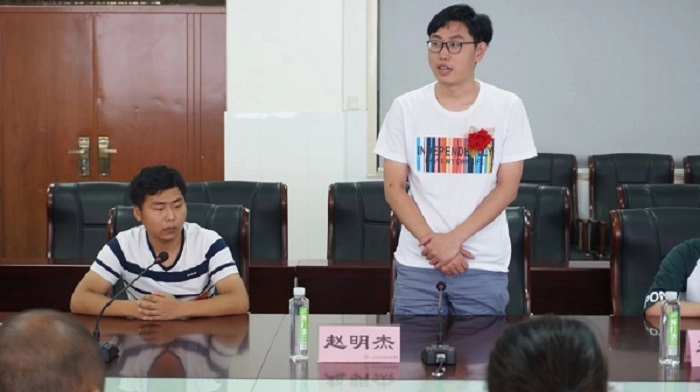 赵明杰同学是必赢官网继薛小雨同学之后的第二位入选大学生西部计划的志愿者,会上,赵明杰同学表达了对母校及老师同学们的感激之情,表达了自己志愿西部、奉献青春、建功立业的决心。同时,赵明杰同学被授予“优秀共青团员”荣誉称号。