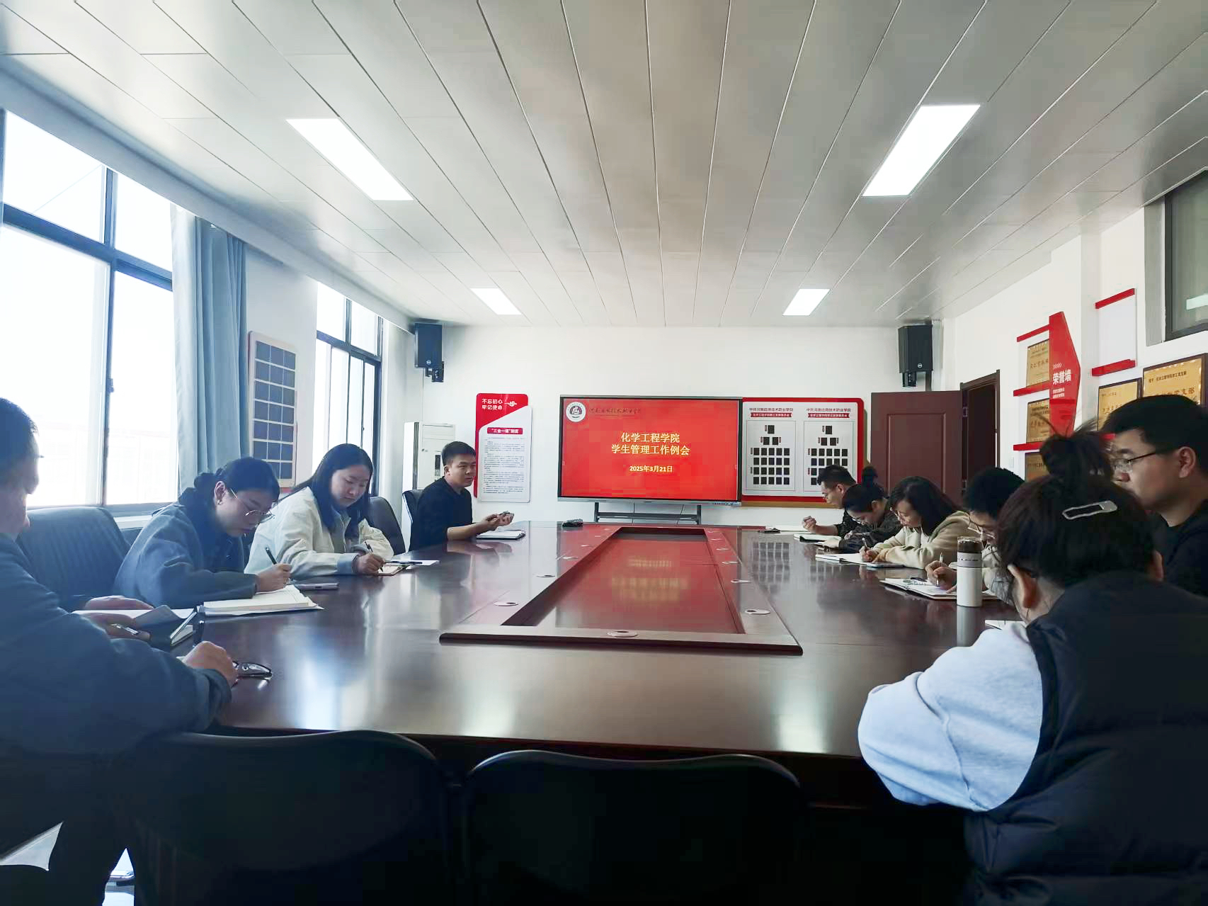 为有效推进学院学生管理工作的开展,夯实学生管理工作基础,化学工程学院于2025年3月21日在A512召开学生管理工作例会,党总支书记陈永惠、党总支副书记常惟诚、各专员及全体专兼职辅导员参加了此次会议。会议由党总支副书记常惟诚主持。